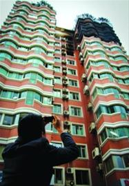 起火樓層附近三層樓的外墻完全被熏黑/晨報記者 肖允 實習(xí)生 宋楊