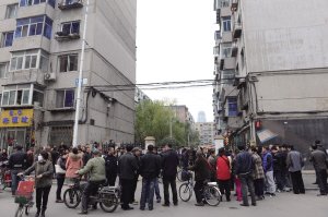 事發(fā)小區(qū)里,部分居民被疏散到室外■華商晨報(bào) 華商響網(wǎng)記者 蔡敏強(qiáng) 攝
