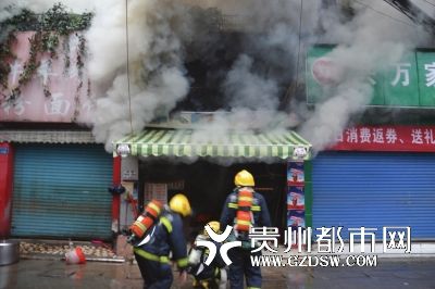 本報訊(張皓瑞記者任勇實習(xí)生曹奕攝影報道)昨日清早,貴陽市萬江小區(qū)附近路旁一個烤魚店突發(fā)火災(zāi),雖無人員被困火場,但有2個液化氣鋼瓶被大火包圍,隨時可能發(fā)生爆炸。貴開路消防中隊接警趕來,成功化解險情。