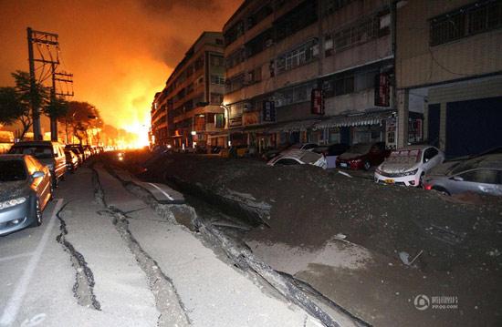 目擊民眾1日凌晨說,爆炸后,當(dāng)?shù)厝?、凱旋路揚起數(shù)米高的落塵,路燈也斷電,破碎的柏油路層層堆棧起來,象是戰(zhàn)場。傷者陸續(xù)送往各醫(yī)院,由院方全力救治。