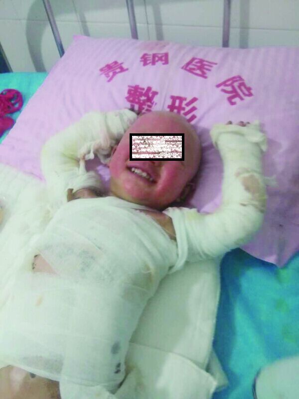 張女士介紹,整個過程持續(xù)了幾秒鐘,由于火勢較大,小謙燒傷嚴(yán)重。小謙父親關(guān)掉煤氣閥門后,才將火勢控制。家人將小謙送往當(dāng)?shù)蒯t(yī)院檢查發(fā)現(xiàn),小謙全身燒傷面積達(dá)75%,醫(yī)院幾次下發(fā)病危通知書。小謙在重癥監(jiān)護(hù)室搶救幾天后,傷情才得以控制。